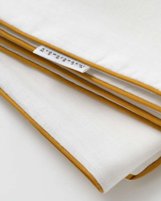 今回ご紹介するのは京和晒綿紗ベビーガーゼ湯上げタオルです。サイズは90×90cm正方形の大きさです。ベビー用にガーゼを3枚重ねにしています。ナチュラルな肌ざわりで、洗濯するたびに柔らかくふんわりとした風合いになります。パイピングの色は、マスタードとグレーの2色展開です。ギフトにもおすすめの製品です。