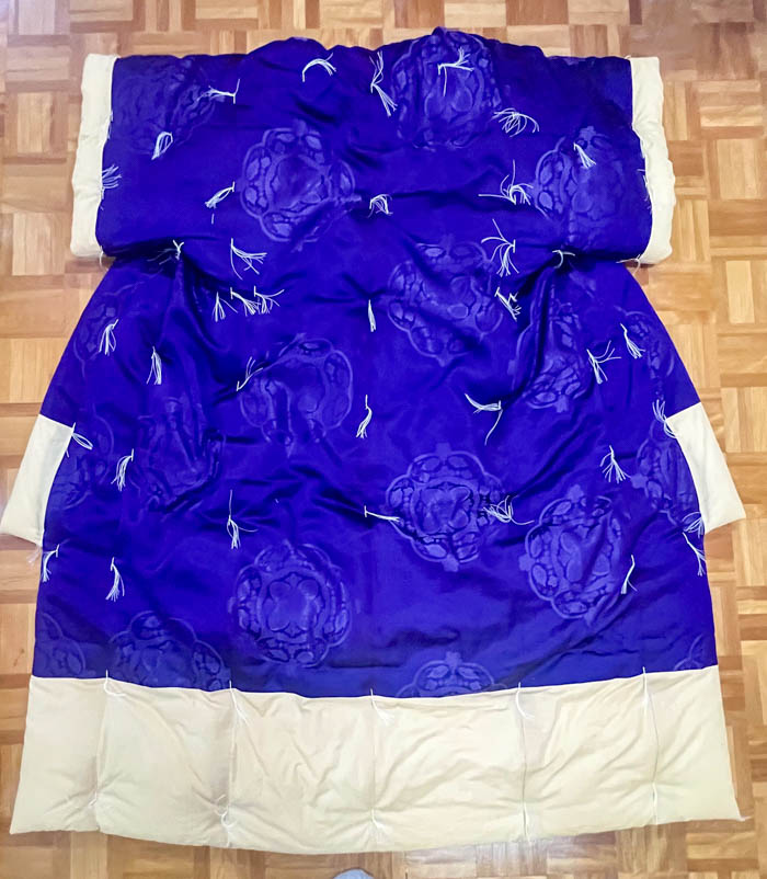少し前の話になるのですが、今年の1月、2月はひたすら夜着(よぎ)の練習に励んでいました。おかげで首、肩、腰に負担がかかり、体がボロボロになりながらも、週3回整骨院に通い、なんとか乗り切ることができました。講習会での練習だけでは足りず、職場や自宅で夜着を作ることもありました。