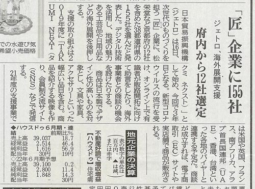 ※TAKUMINEXT2021採択については、2021年8月17日(火)京都新聞(11面・経済プラス)にも掲載されました。