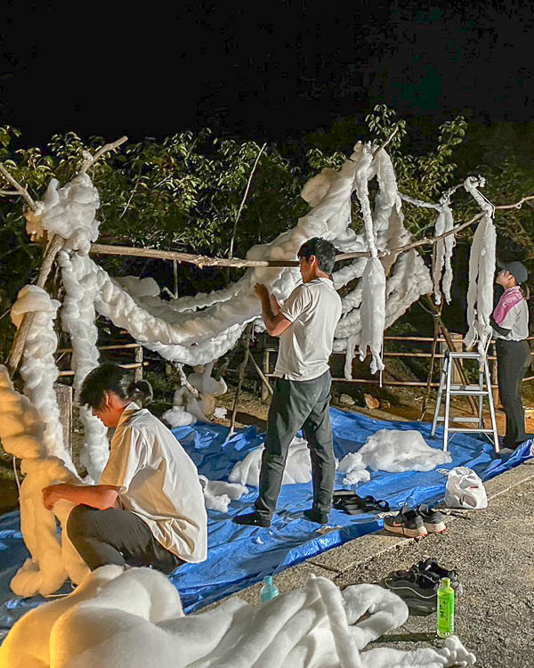2023年9月17日(日)仁和寺で行われた「建築学生ワークショップ仁和寺2023」第5班に芸術文化の振興活動(メセナ活動)の一環として作品資材となる「ポリエステル綿」を提供させていただきました。
