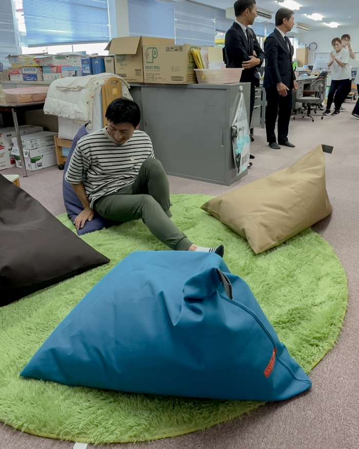 当日は三宅町役場に伺い、森田浩司町長との面会の後、tetra(テトラ)を設置しました。tetra(テトラ)は、職員室の休憩スペースと絵本スペースに設置され、教員さんの職場環境の改善と親子のコミュニケーションづくりに役立てていただきます。