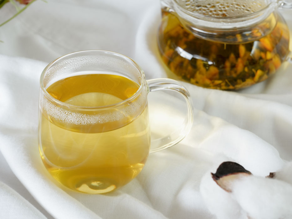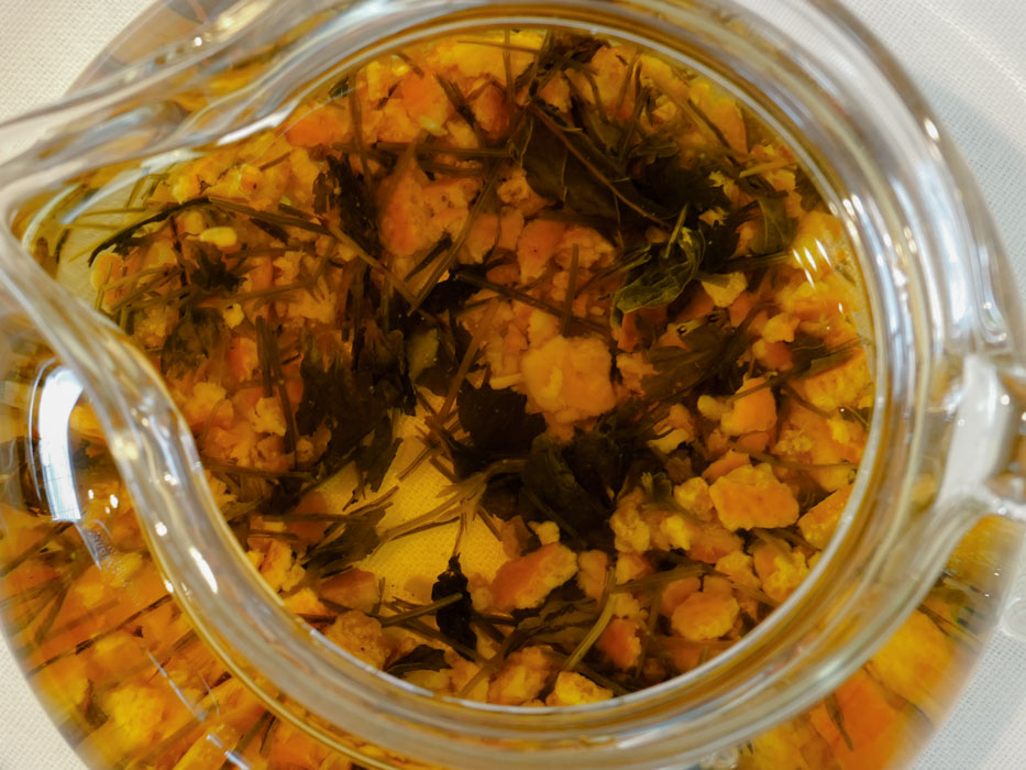 ねむりの蔵では期間中、京和晒綿紗ガーゼパジャマをご購入いただくと、京都のハーブショップ With Herb(https://with-herb.com/)様が当社のためにブレンドしたオリジナルハーブティーをプレゼント。今回、セレクトしたオレンジミントは爽やかなオレンジが特長のハーブティーです。