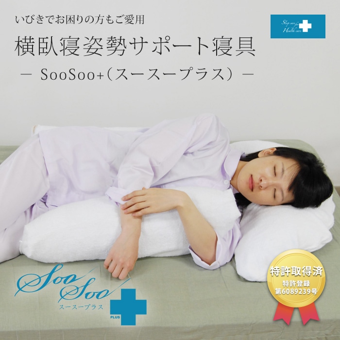 そこで、入眠すれば寝姿勢が元の仰向けに戻ってしまう頭部だけを横向きにして眠るための枕ではなく、朝まで横臥寝姿勢を維持するためのサポート寝具を開発。それが「Soo Soo PLUS(スースープラス)」です。